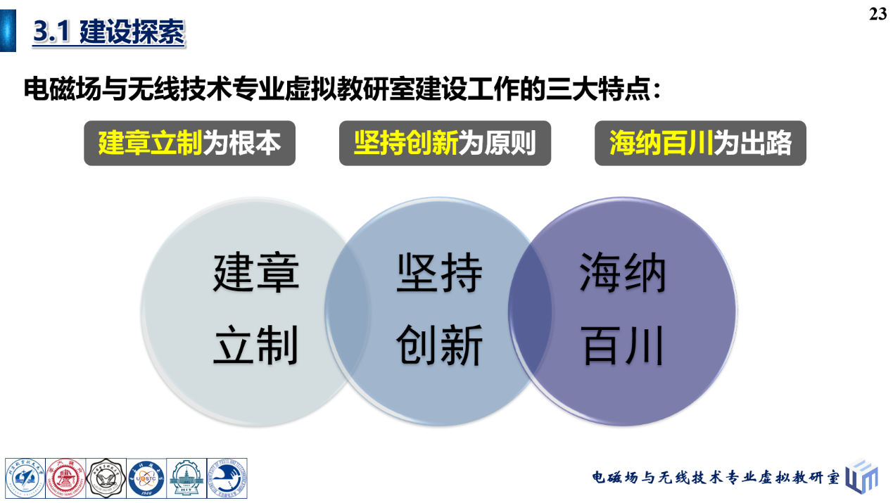 电磁场与无线技术专业虚拟教研室牵头人、ylzzcom永利总站线路检测苏东林教授对电磁场与无线技术专业虚拟教研室试运行阶段的工作进行了总结。截至目前,电磁场与无线技术专业虚拟教研室已形成了初步完善的规章制度,形成了常态化研讨制度,建设了丰富的共享资源,成为了核心成员高校老师们共同的精神家园,已辐射带动七十余个单位、千余位老师和专家常态化参与人才培养的活动。未来,电磁场与无线技术专业虚拟教研室将完善制度、持续扩大规模,进一步辐射全国、谋求共同发展!